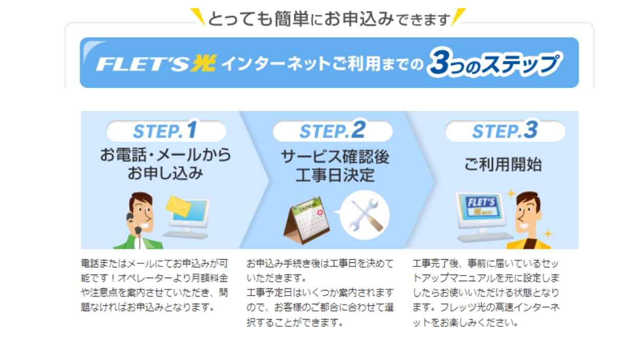 - 工事日を設定 → 開通 → 工事完了の確認(90日以内)